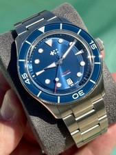 Up for sale is a Christopher Ward C65 Dune GMT with the blue dial, unworn and still stickered, full kit from CW. This is one of those watches that looks even better in person — the blue dial pops, the sand-tone GMT bezel adds just enough character, and the proportions are spot on for daily wear. It’s mounted on the OEM canvas strap with leather backing, which is super comfortable and fits the whole “Dune” aesthetic perfectly. Lightweight, versatile, and easy to wear all day. Condition is exactly what you want: Unworn. No marks. No drama. Basically new without the wait or taxes. If you’ve been curious about Christopher Ward or want a true GMT that doesn’t feel bulky, this is a fantastic pickup — honestly one of the best values in this segment. Price: $995 + label No trades unless it’s something genuinely cool or financially irresponsible