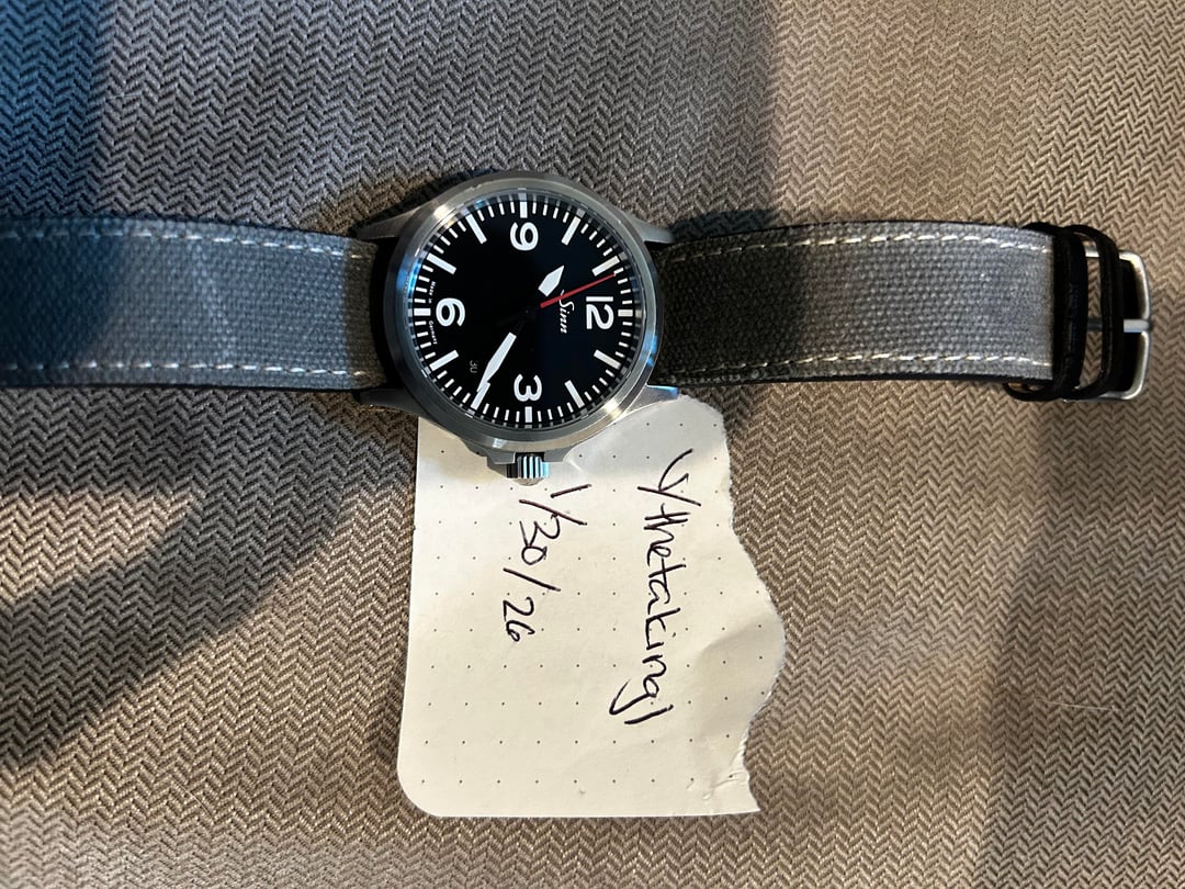 Up for grabs is a Sinn 556A RS, 2025 model, full kit (box, papers, the whole German experience). Classic matte black dial, red seconds hand doing its little cardio workout, and currently on the OEM grey Sinn leather strap, which suits this watch way better than it has any right to. Condition-wise: overall very good, keeps great time, crystal is clean. There are a couple small flea bites on the bezel—nothing dramatic, no bar fights, just honest wear you’d expect from a tool watch that’s actually seen daylight. If you squint from across the room, it’s flawless. If you don’t squint, still very solid. Why this watch? It’s thin, tough, legible, and somehow works with gym shorts, jeans, and business casual. If you know Sinn, you already know. If you don’t, this is a very safe way to find out. Price: $1199 + label