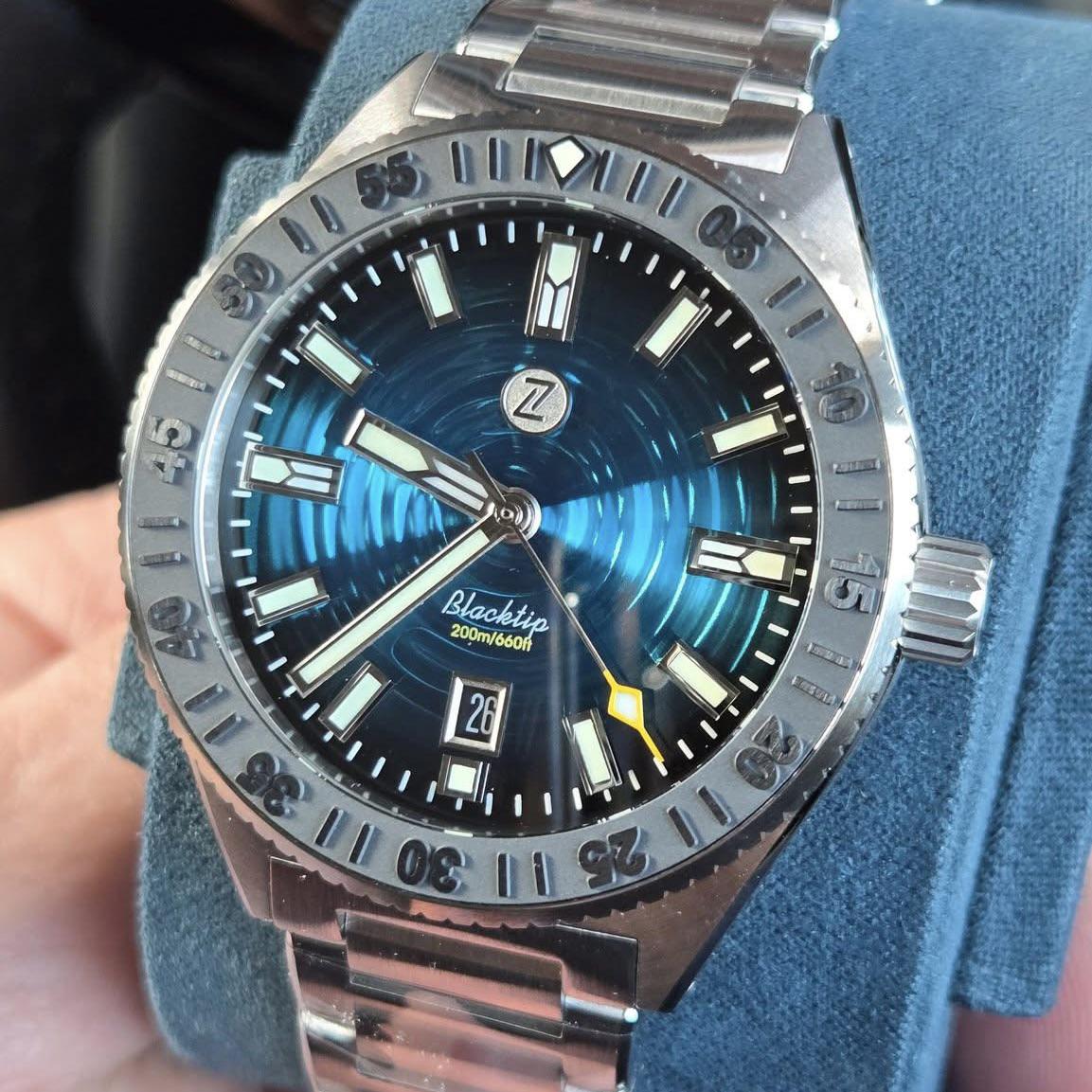 Hi all, Selling a brand new Zelos Blacktip Whirlpool 41mm Stainless Steel Diver’s Watch CNC guilloche circular dial with fume teal color, and a final enamel gloss coating. Ceramic bezel with embossed markings Full set with all protective stickers intact Asking $489 USD + Shipping cost from Asia Payment via Revolut or Wise preferred or Paypal G&S + 6% Timestamp: https://imgur.com/a/YRq8irD Feel free to reach out with any questions Thanks for looking!