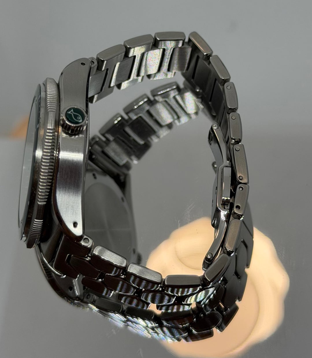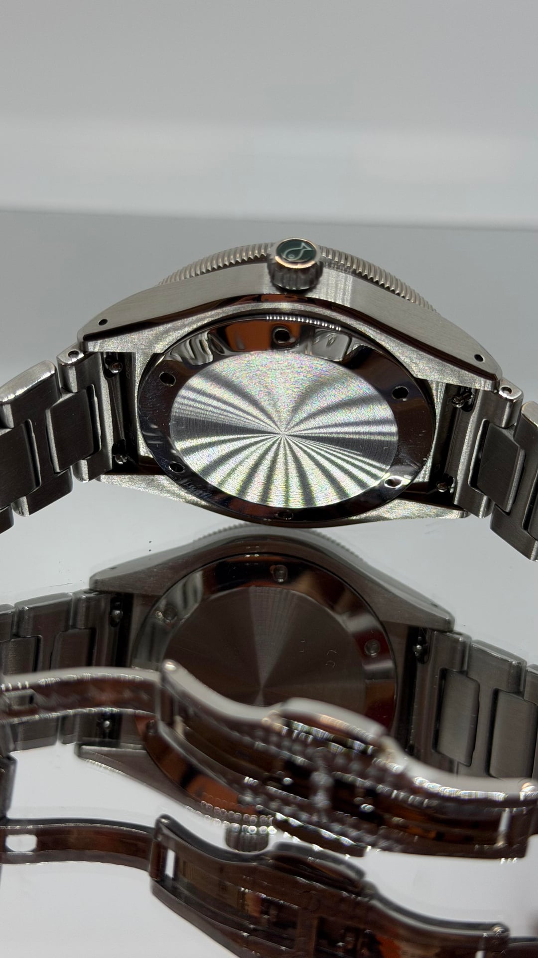 The watch is in excellent condition. Very gently used, no major scratches, only faint signs of wear consistent with careful handling. Full kit including the original rubber strap which is unworn. Suave Green dial with crosshair design. Unique hexagonal sapphire bezel inlay. Diameter: 38.5mm Lug to Lug: 46mm Thickness: 12mm Case: 316L Stainless Steel, bead-blasted Movement: Sellita SW200-1 Automatic Water Resistance: 150m Crystal: Sapphire with AR coating Bracelet: Proprietary Hexagonal link bracelet 950€ shipped within EU (for US add 60€)- payment with PayPal FF / Wise / Revolut / Bank / GS (buyer covers fees)
