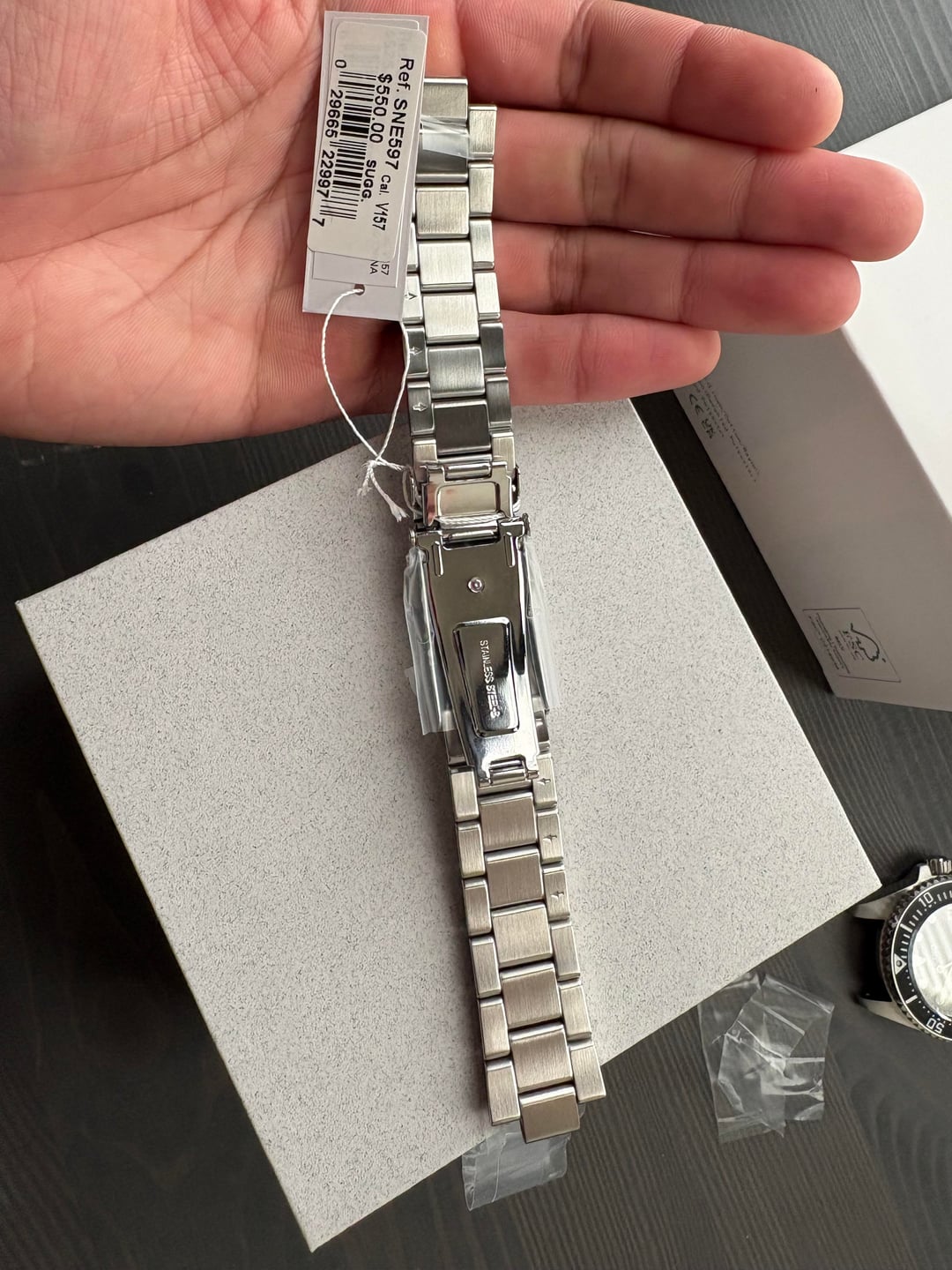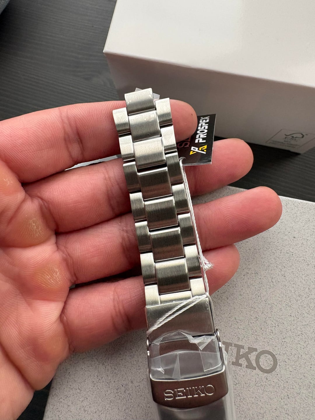 Purchased from LIW for $440 brand new 1/28/26. Bracelet is unworn and still in plastic and tags. Worn for a day on a divecore strap. Watch is in mint brand new condition. Asking $400 shipped CONUS. Specs: Movement: Seiko V157, Solar Quartz with 10 month reserve Case: Stainless steel, 41mm diameter x 11.3mm thick. 48.8mm tip to tip. Back: Screw case back Crystal: Sapphire crystal Band: Stainless steel bracelet, Three-fold clasp with secure lock. 20mm lug. Water Resistant: 200 meters Weight: 157 grams Warranty: 2 Years