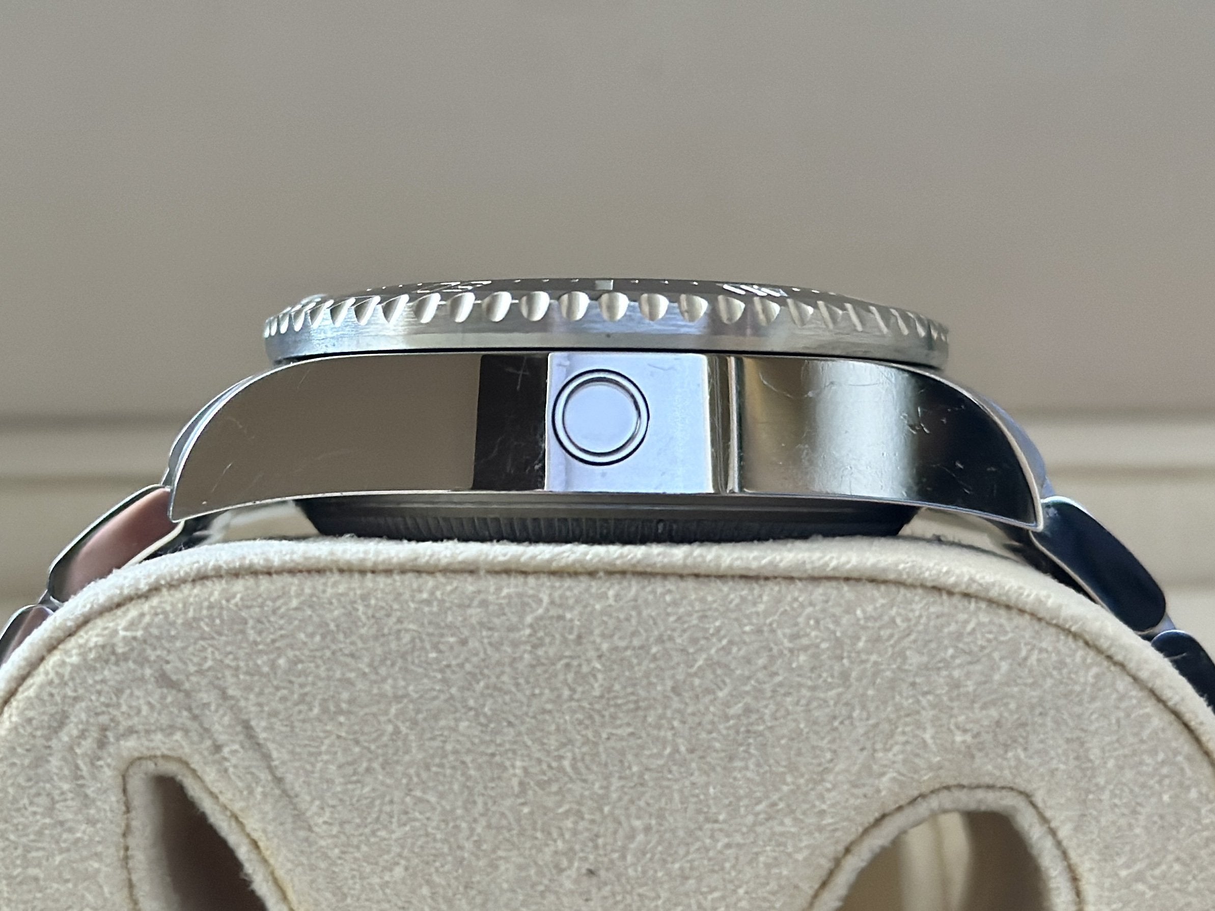 The OG First Edition James Cameron DSSD in VG Condition that comes as a full set! Watch shows minor marks, mostly on the polished sides of case and clasp. Comes complete with inner/outer boxes, green serial tag, green cosc tag, dive extension, booklets (3), booklet holder, original warranty card dated 07.2015 and original purchase receipt.