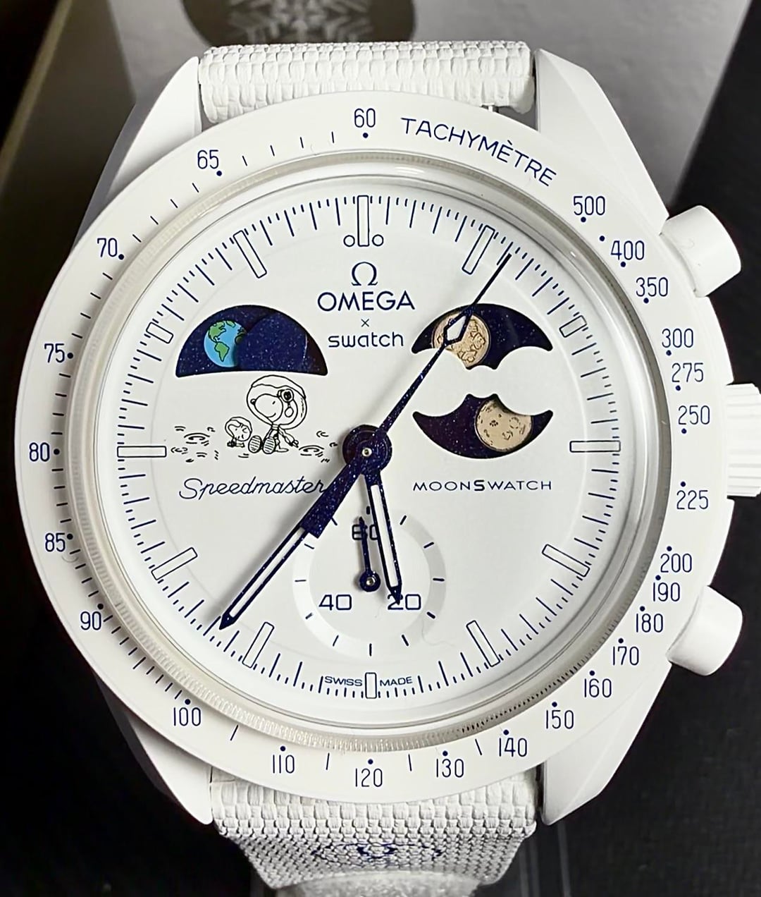 • White Bioceramic case (42mm) • Quartz chronograph + Earthphase +Moonphase • Grade A Super-LumiNova glow (hits HARD in the dark) • White rubber Velcro strap (super comfortable + sporty) • Limited time availability / hard-to-find